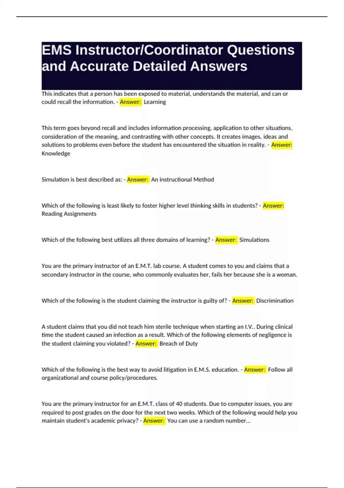 EMS Instructor/Coordinator Questions