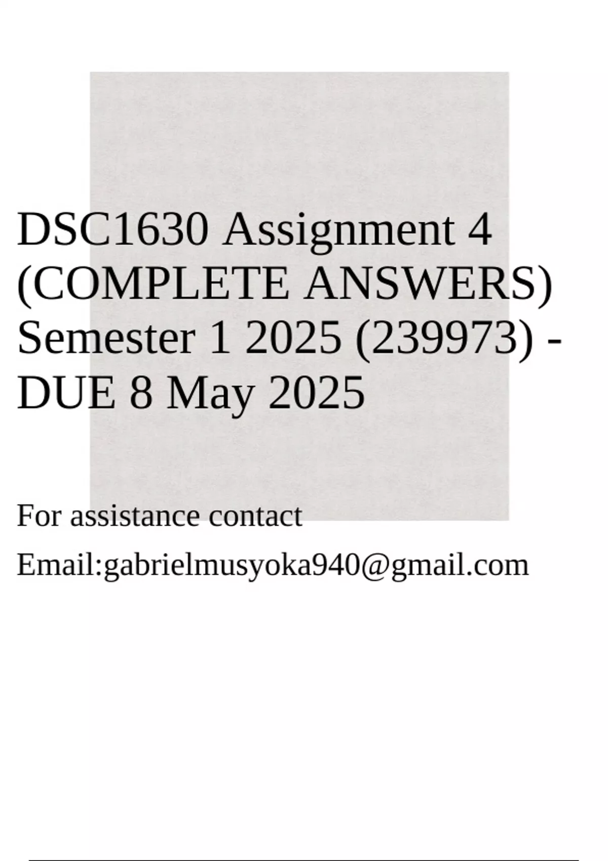 DUE 8 May 2025