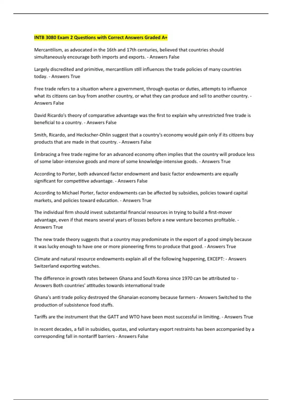 Answers False