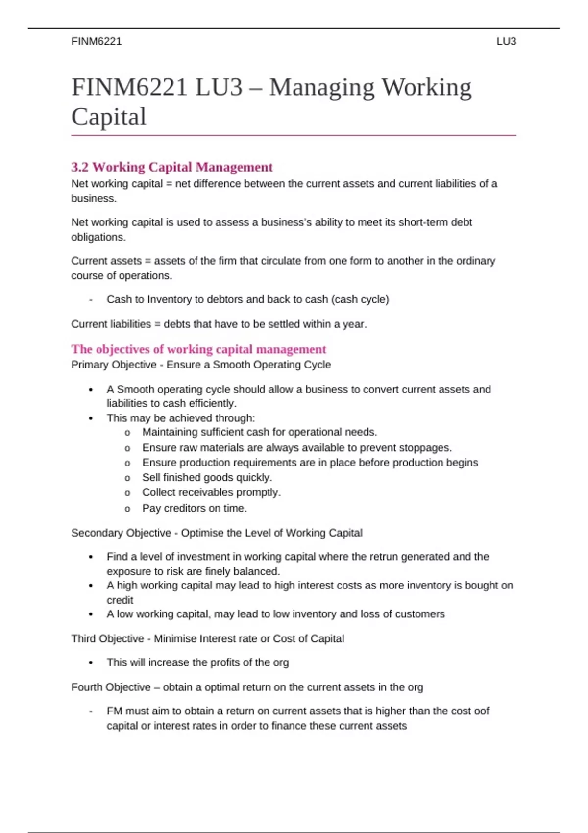 FINM6221 LU3 – Managing Working