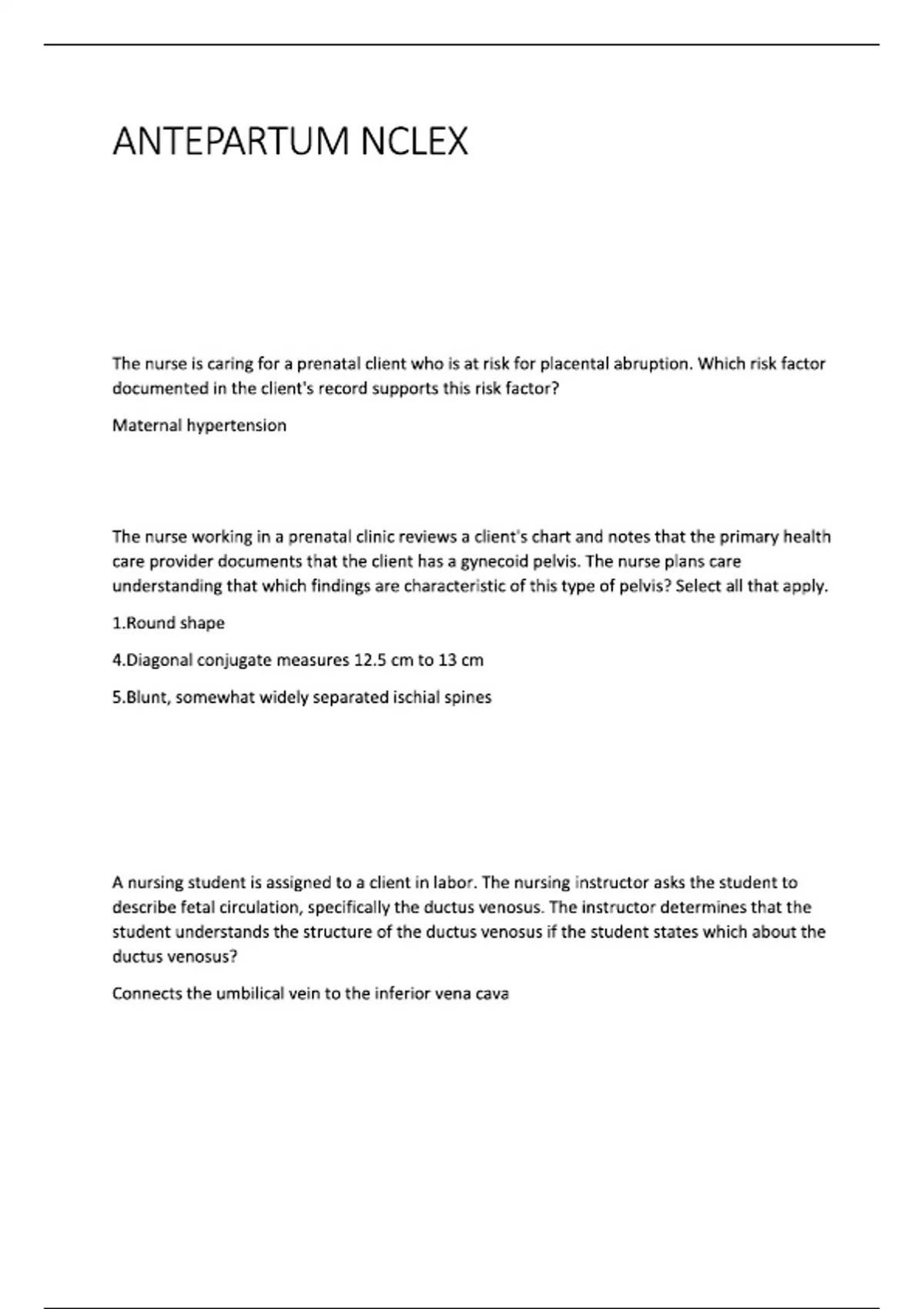 ANTEPARTUM NCLEX (Latest 2025/2026 Update) Questions and answers with Rationales 100% Correct.