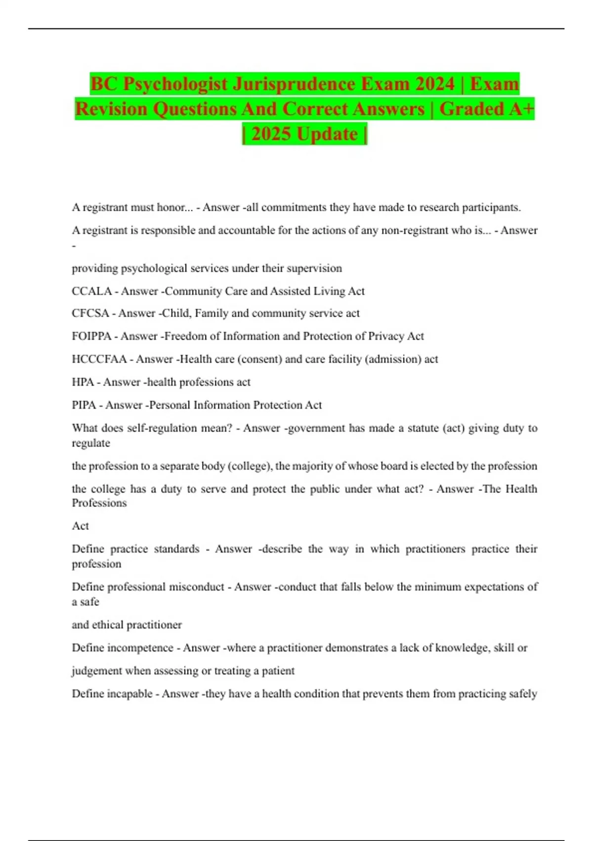 BC Psychologist Jurisprudence Exam 2024 | Exam