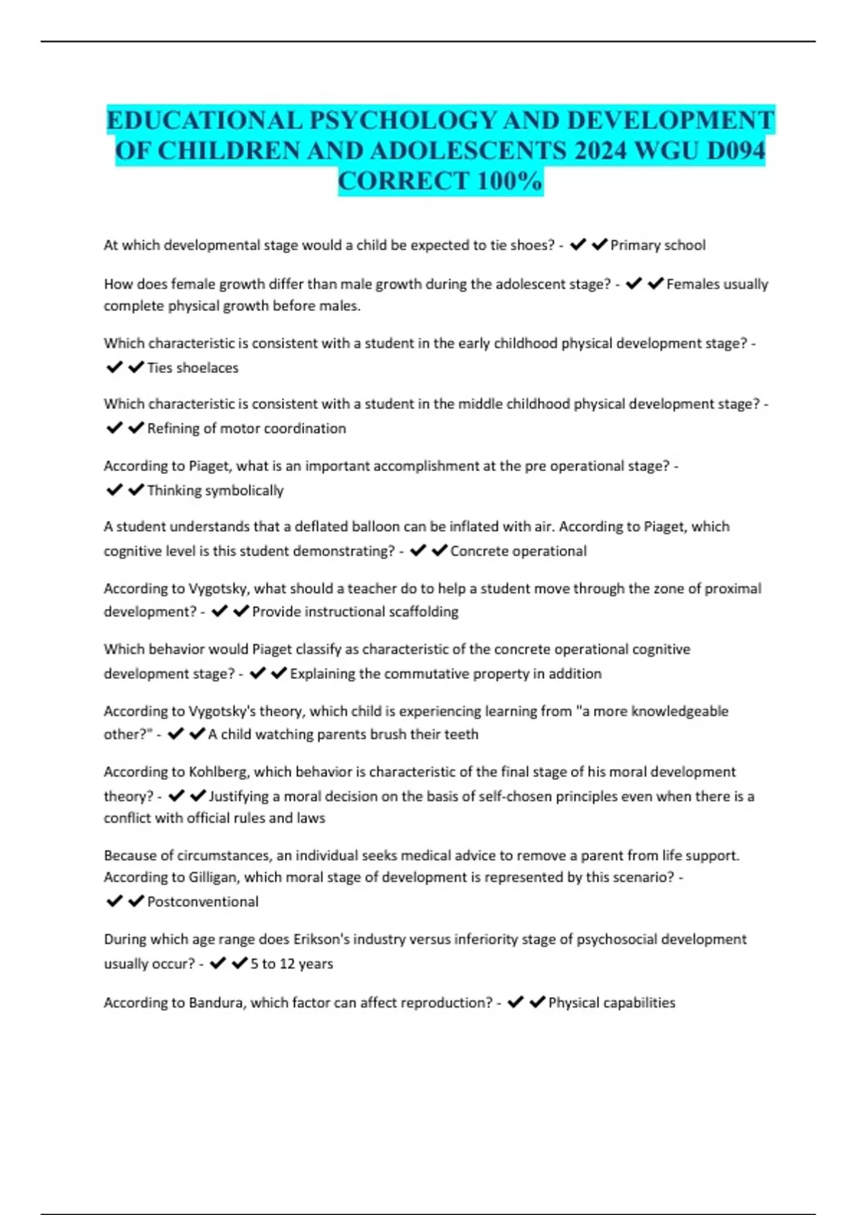 OF CHILDREN AND ADOLESCENTS 2024 WGU D094
