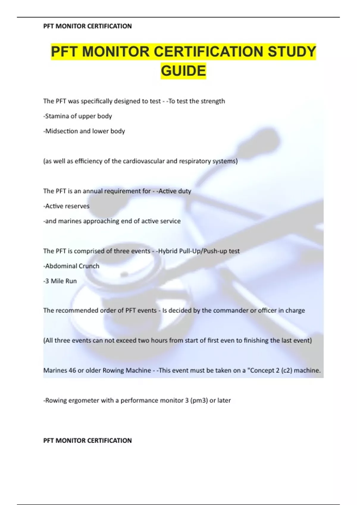 PFT Monitor responsibilities (Monitor Duties) - Oversee the administering of the PFT test