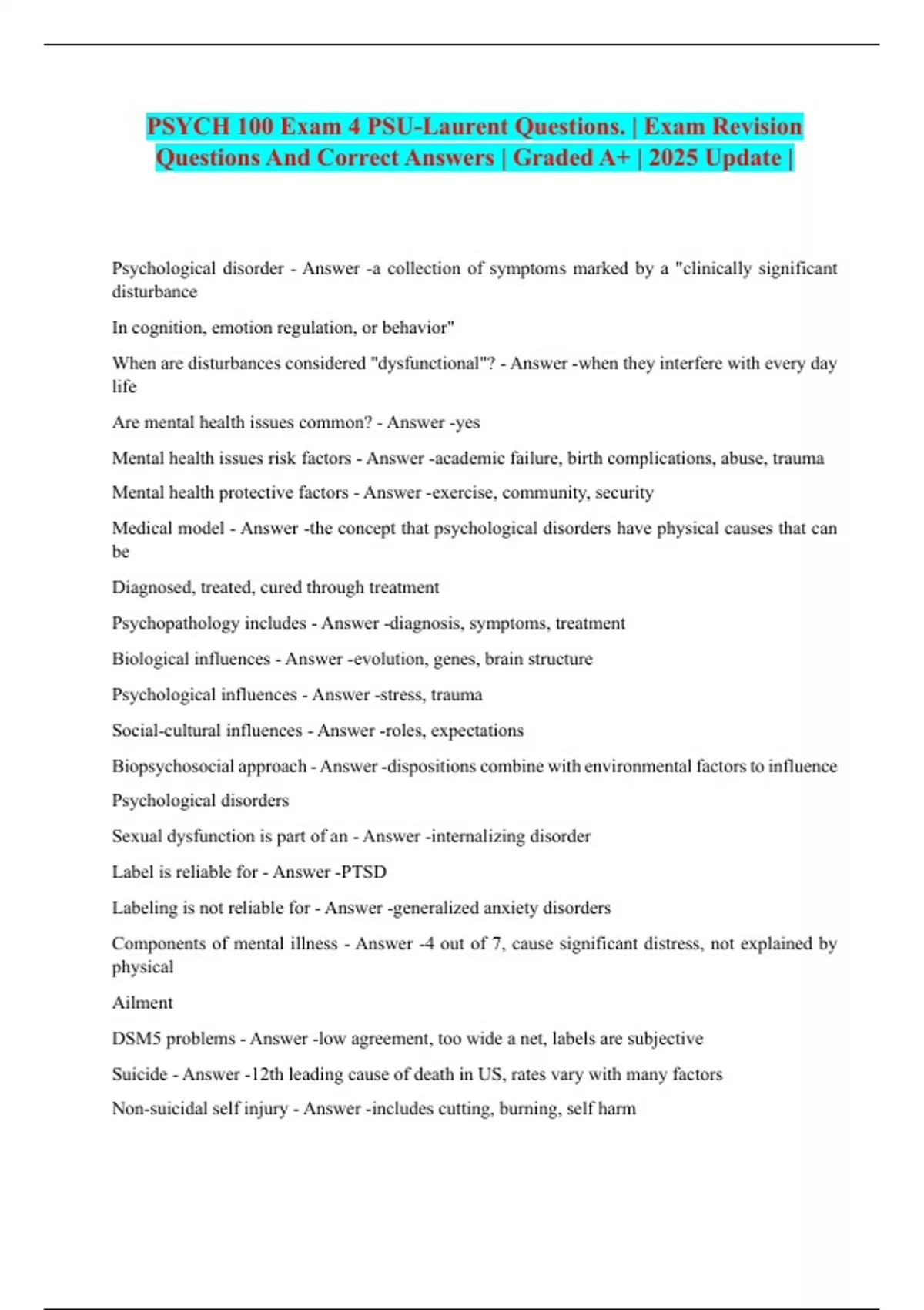 PSYCH 100 Exam 4 PSU-Laurent Questions. | Exam Revision