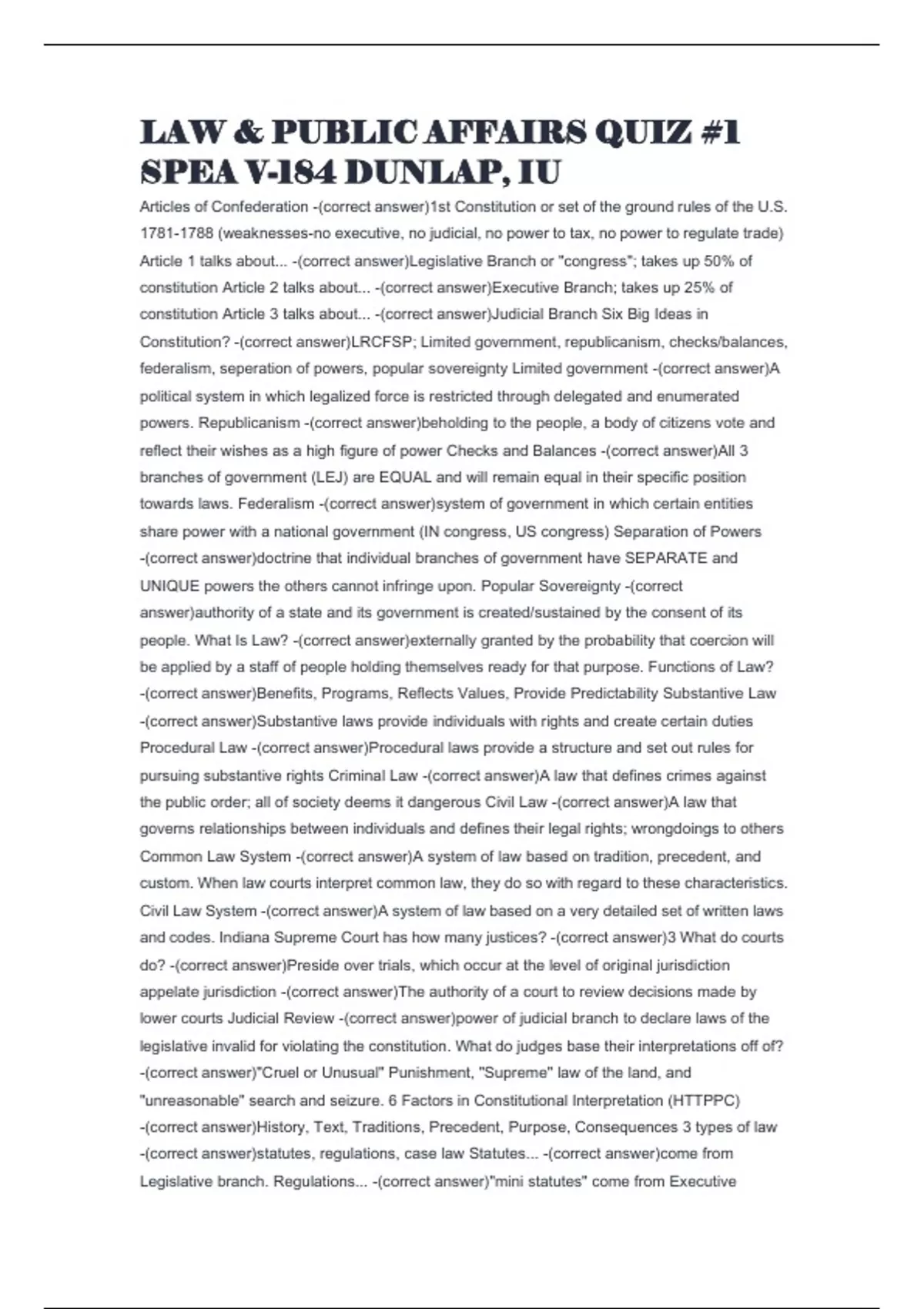 LAW & PUBLIC AFFAIRS QUIZ #1