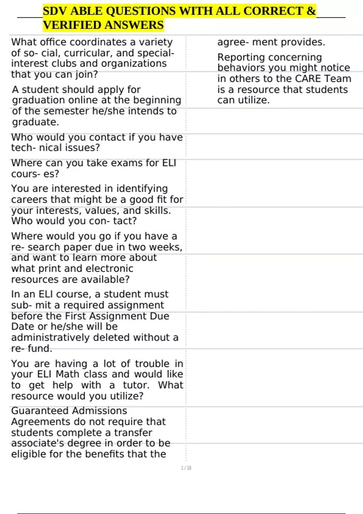 SDV ABLE QUESTIONS WITH ALL CORRECT &