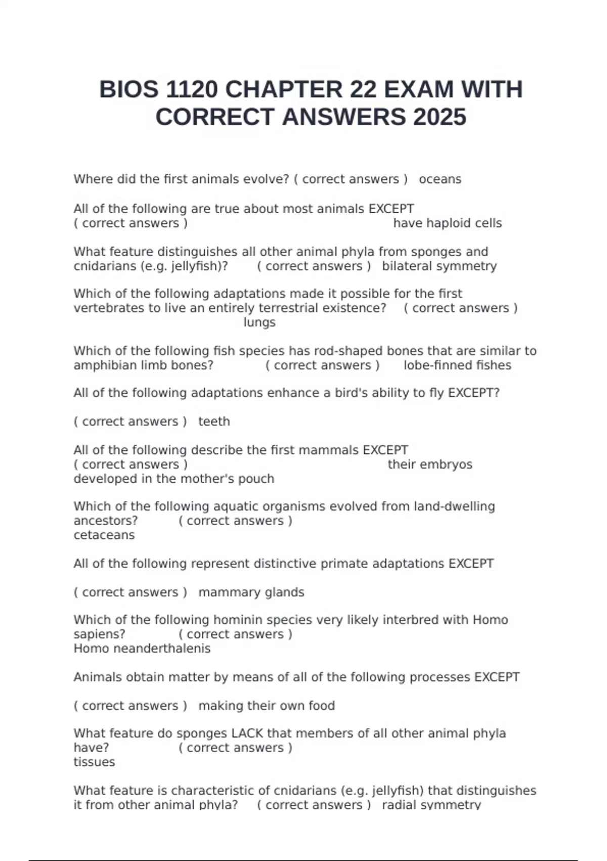 BIOS 1120 CHAPTER 22 EXAM WITH