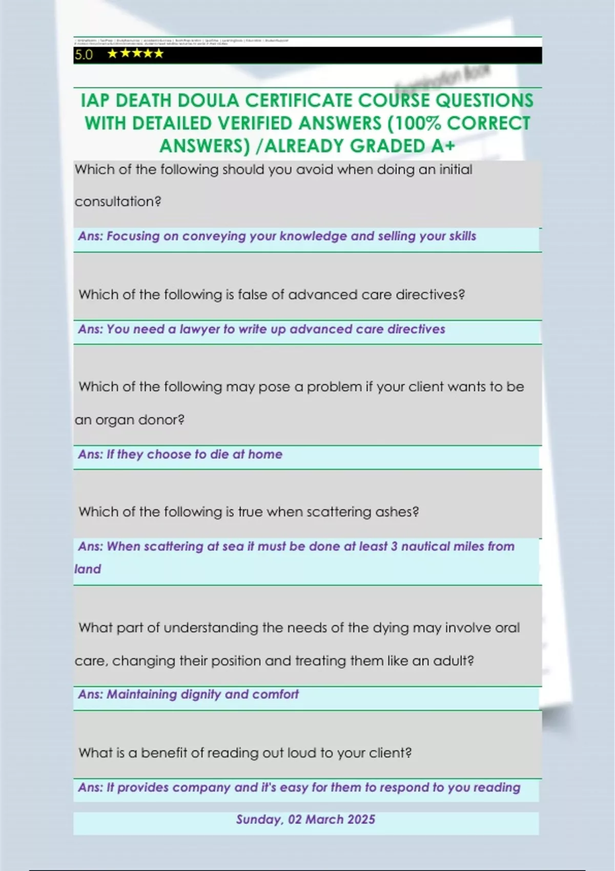 IAP DEATH DOULA CERTIFICATE COURSE QUESTIONS