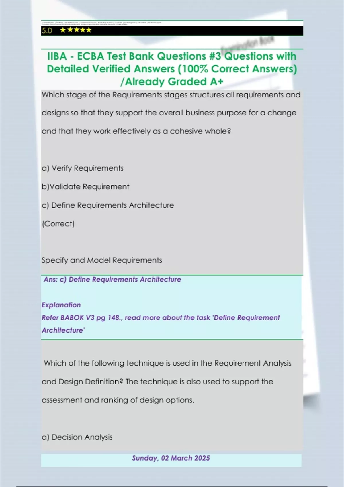 IIBA - ECBA Test Bank Questions #3 Questions with Detailed Verified Answers (100% Correct Answers) /Already Graded A+