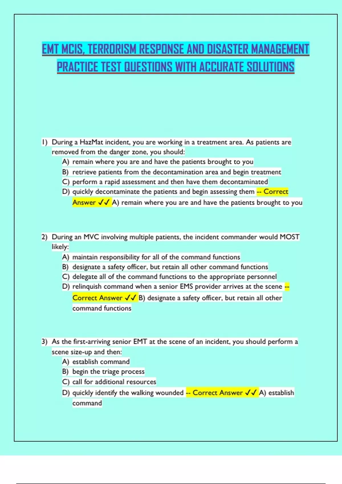 3) As the first-arriving senior EMT at the scene of an incident, you should perform a