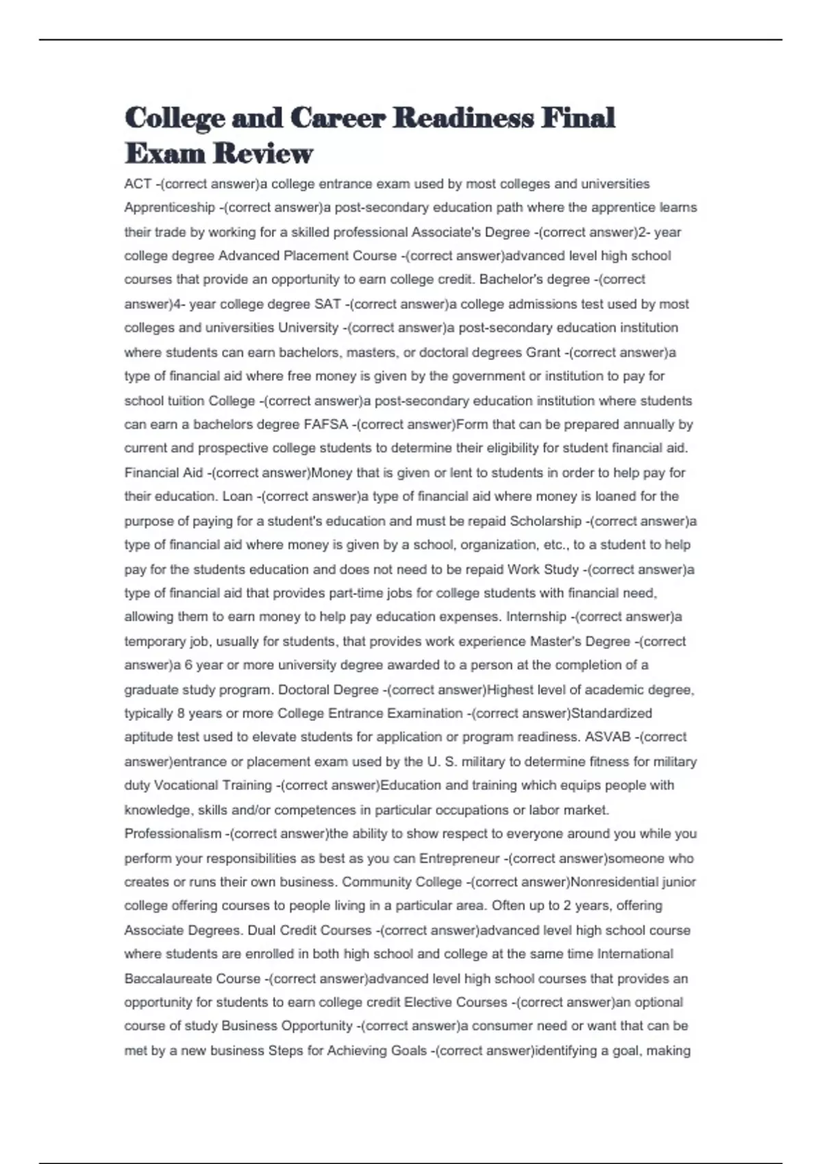 answer)4- year college degree SAT -(correct answer)a college admissions test used by most