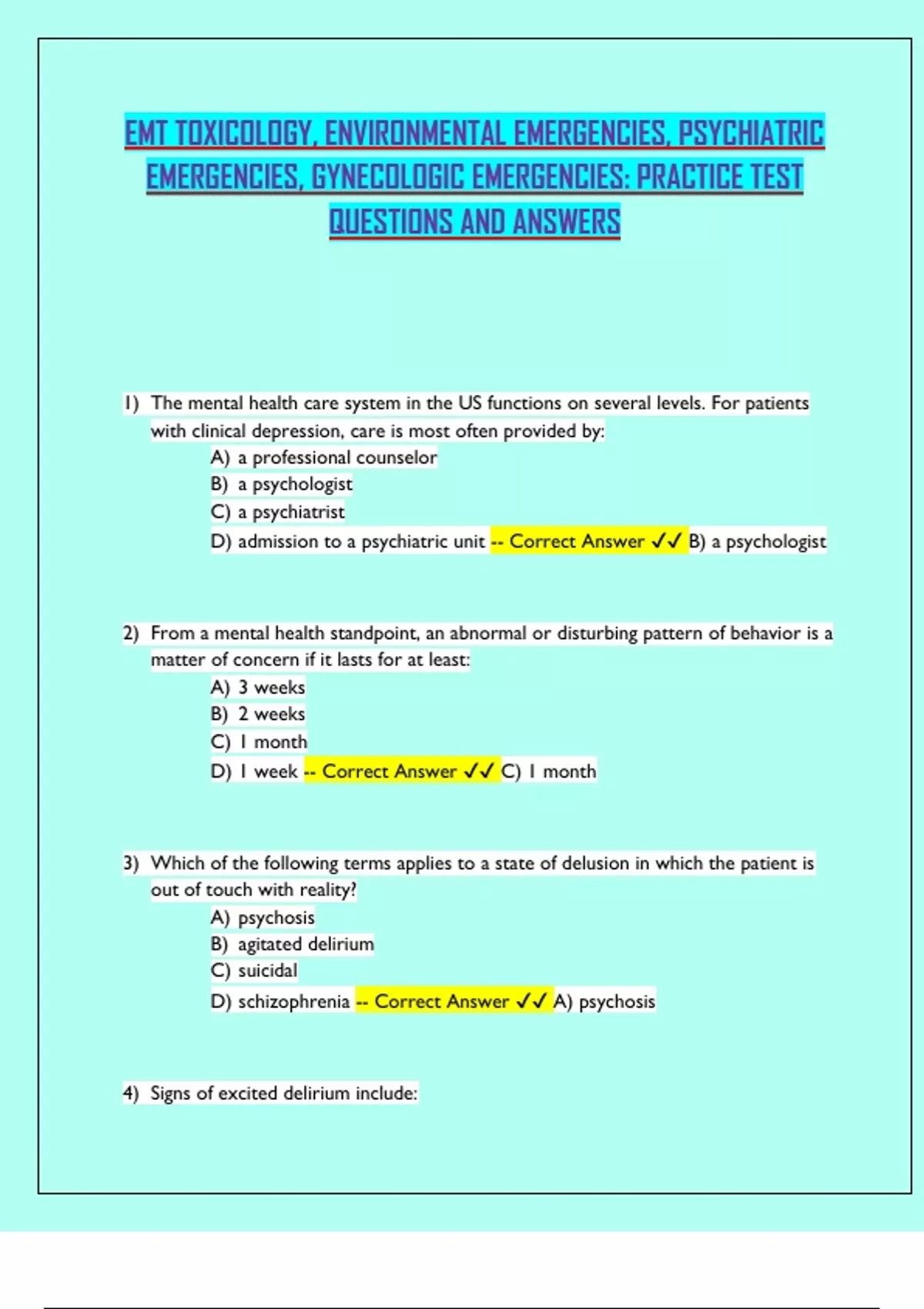 EMT TOXICOLOGY, ENVIRONMENTAL EMERGENCIES, PSYCHIATRIC