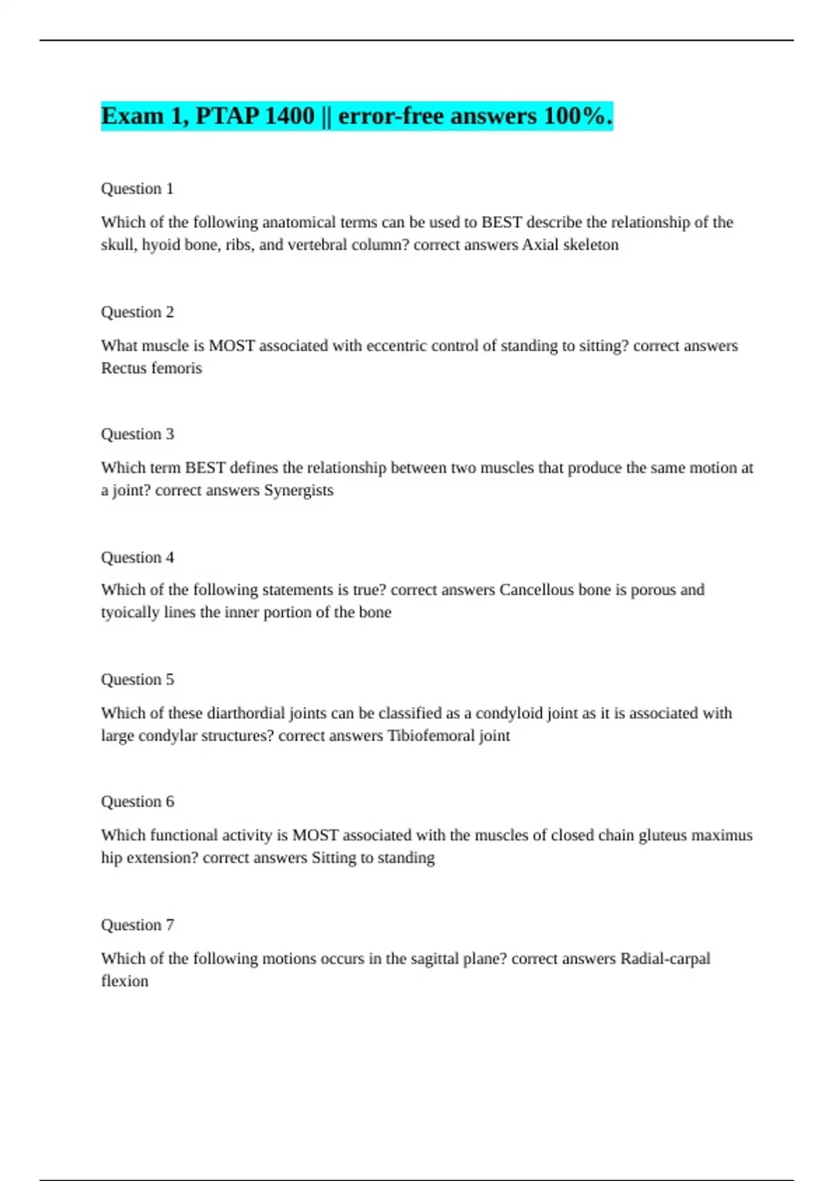 skull, hyoid bone, ribs, and vertebral column? correct answers Axial skeleton