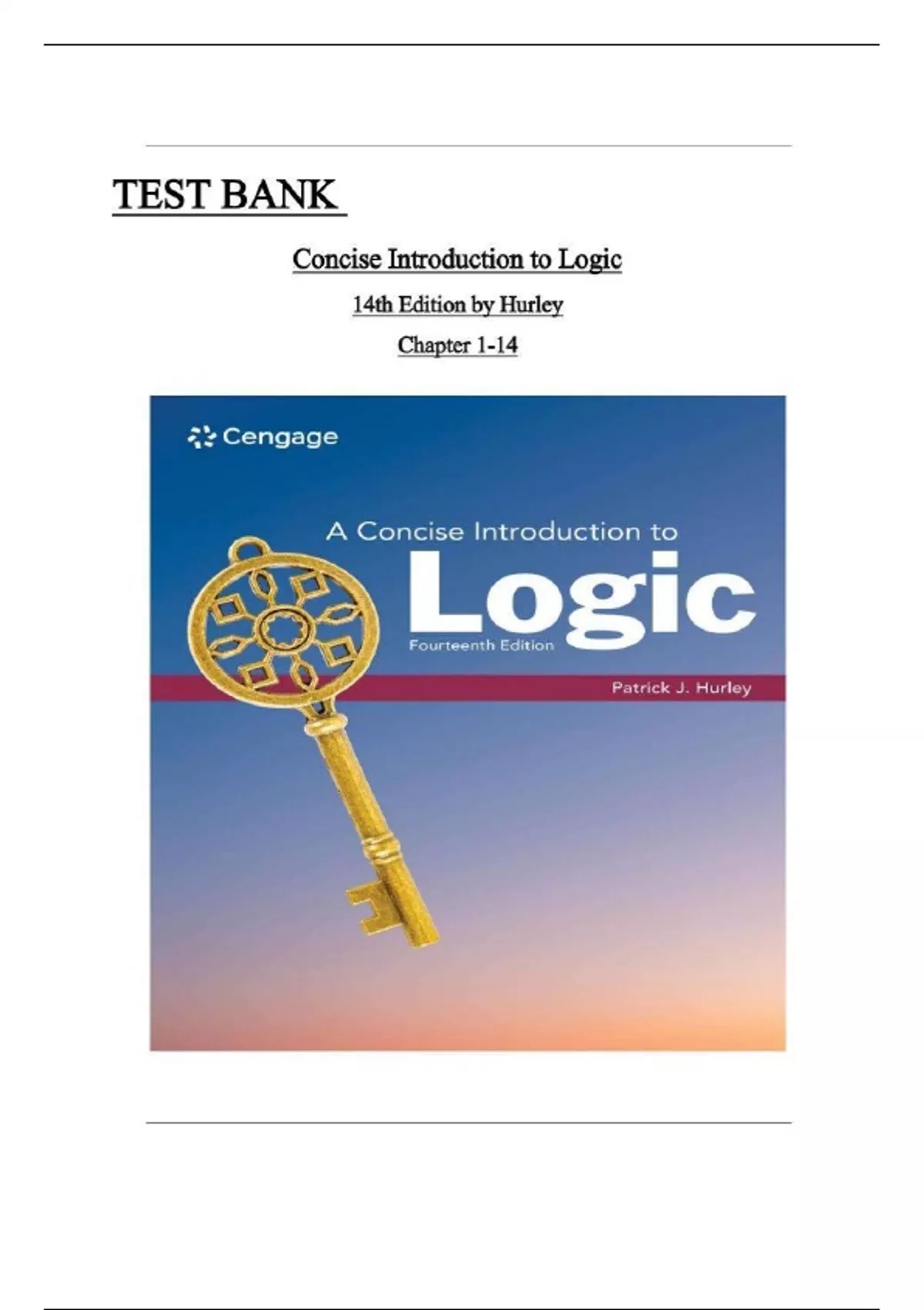 Test Bank For A Concise Introduction to Logic 14th Edition by Patrick J. Hurley Chapter 1-14 LATEST.