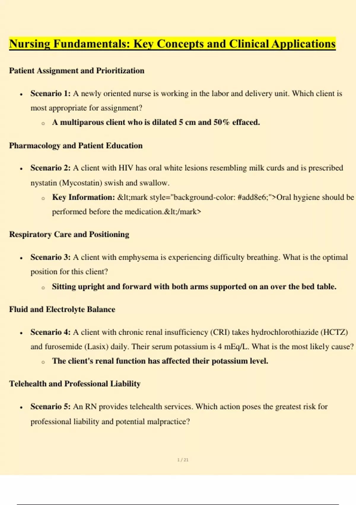 Scenario 2: A client with HIV has oral white lesions resembling milk curds and is prescribed