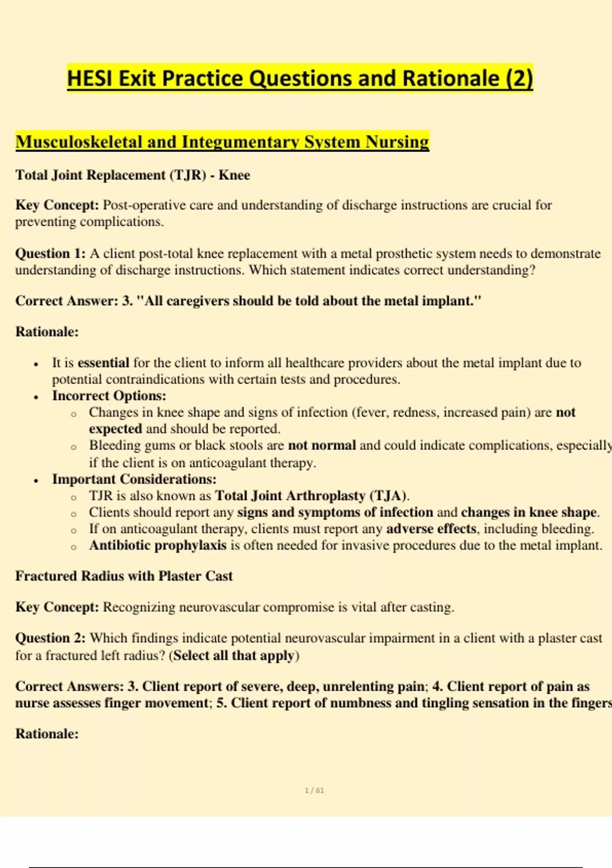 Question 1: A client post-total knee replacement with a metal prosthetic system needs to demonstrate