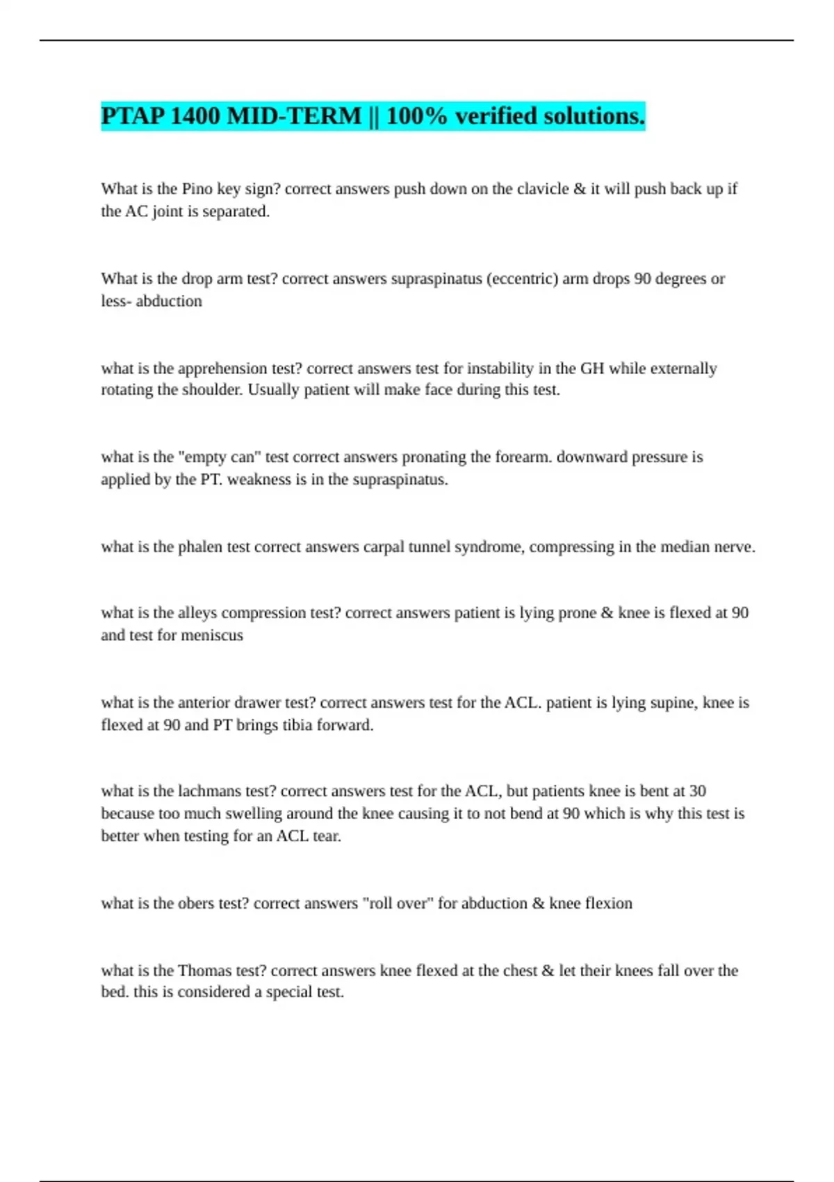 what is the "empty can" test correct answers pronating the forearm. downward pressure is