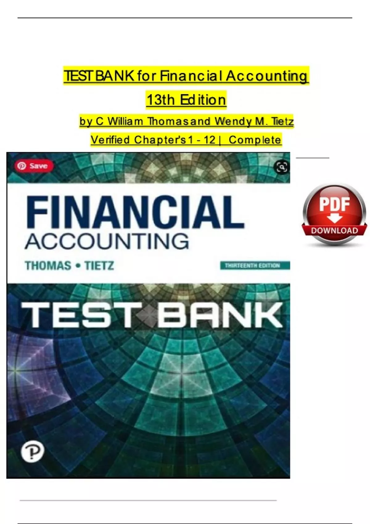 TEST BANK for Financial Accounting, 13th Edition by C William Thomas and Wendy M. Tietz Verified Chapters 1 - 12, Complete Newest Version