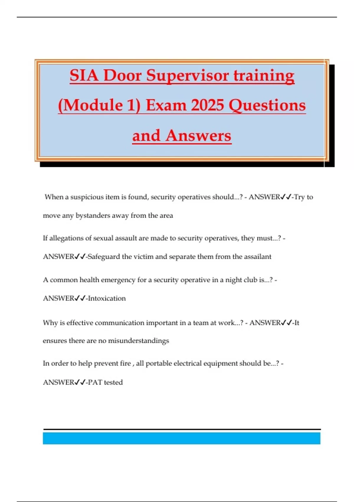 SIA Door Supervisor training (Module 1) Exam 2025 Questions and Answers