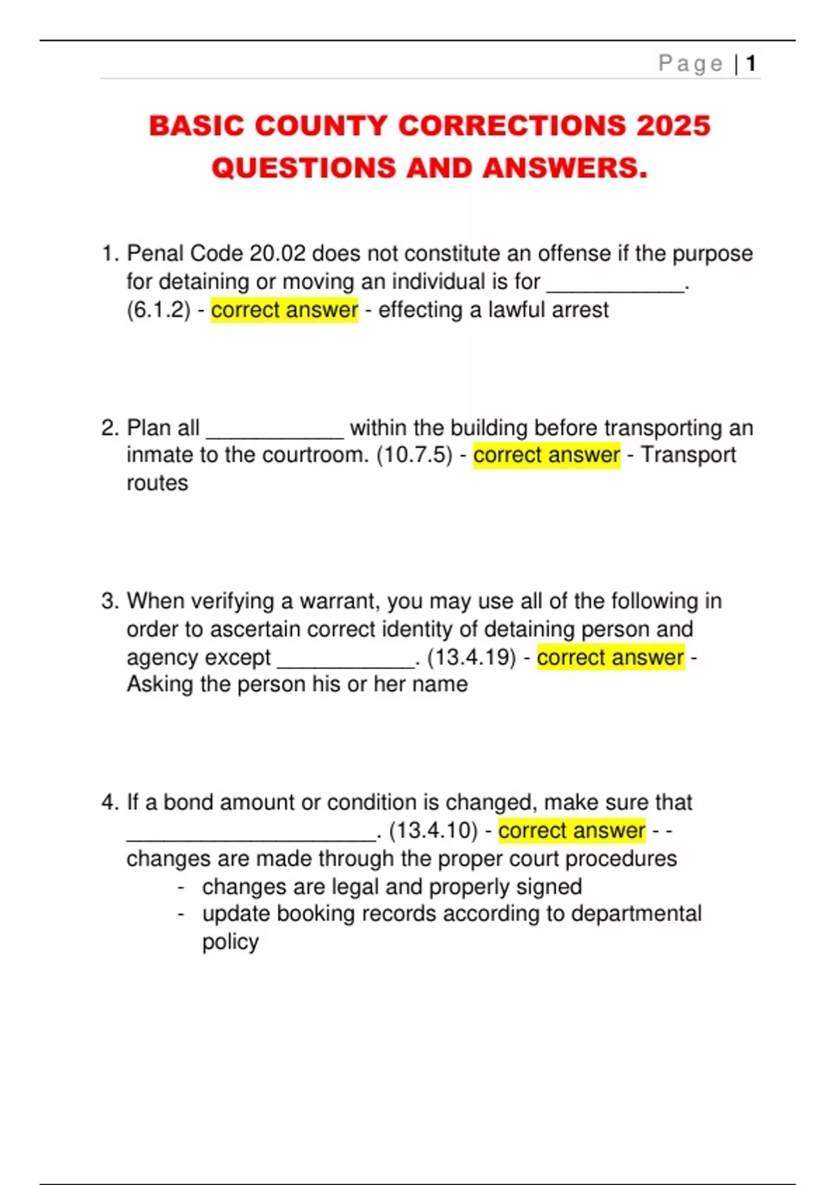 BASIC COUNTY CORRECTIONS 2025 QUESTIONS AND ANSWERS.