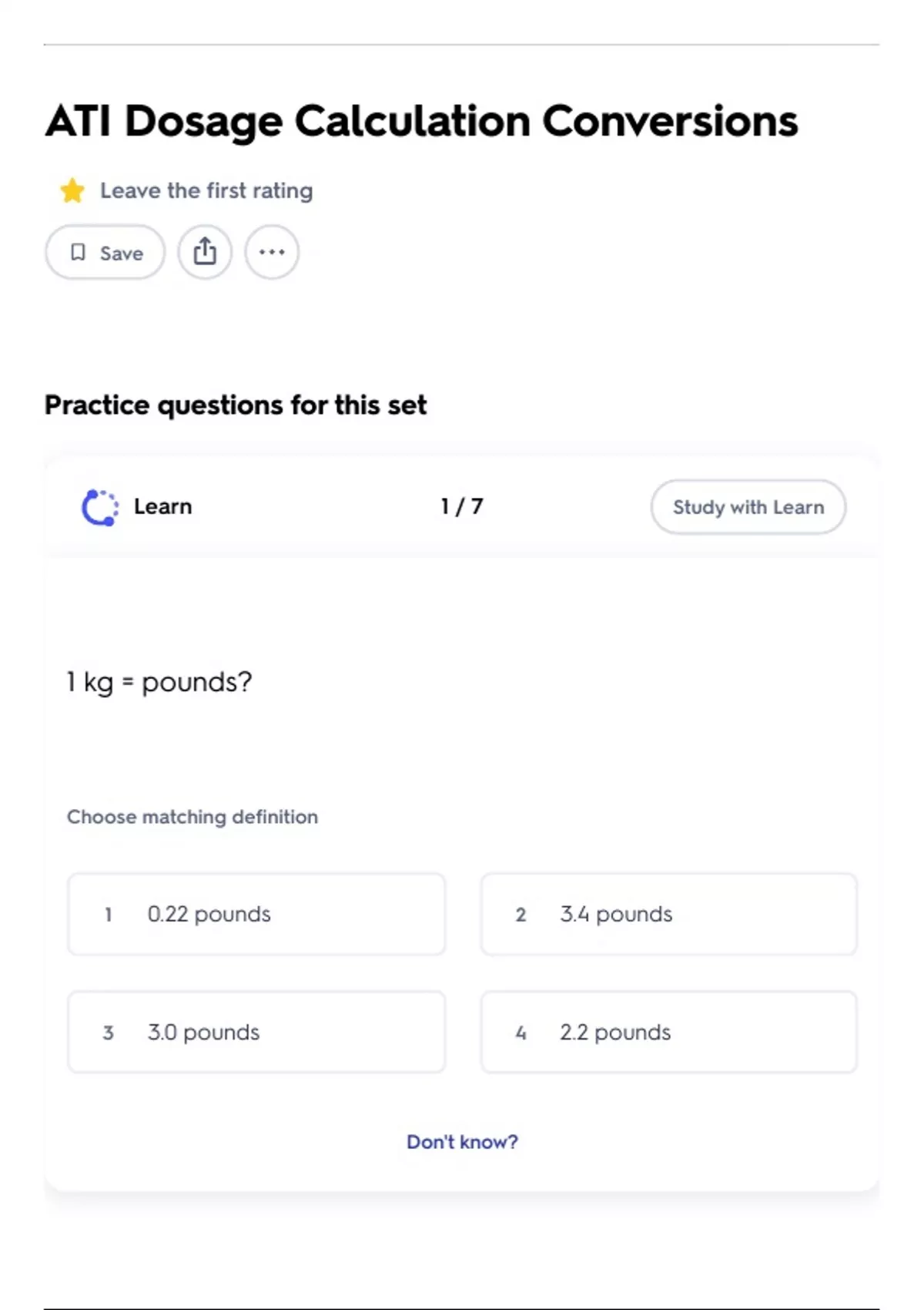 1 0.22 pounds 2 3.4 pounds