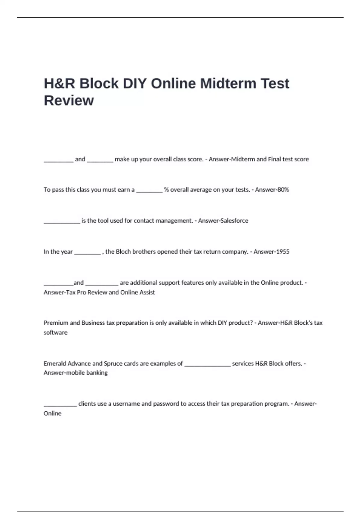 Premium and Business tax preparation is only available in which DIY product? - Answer-H&R Block's tax