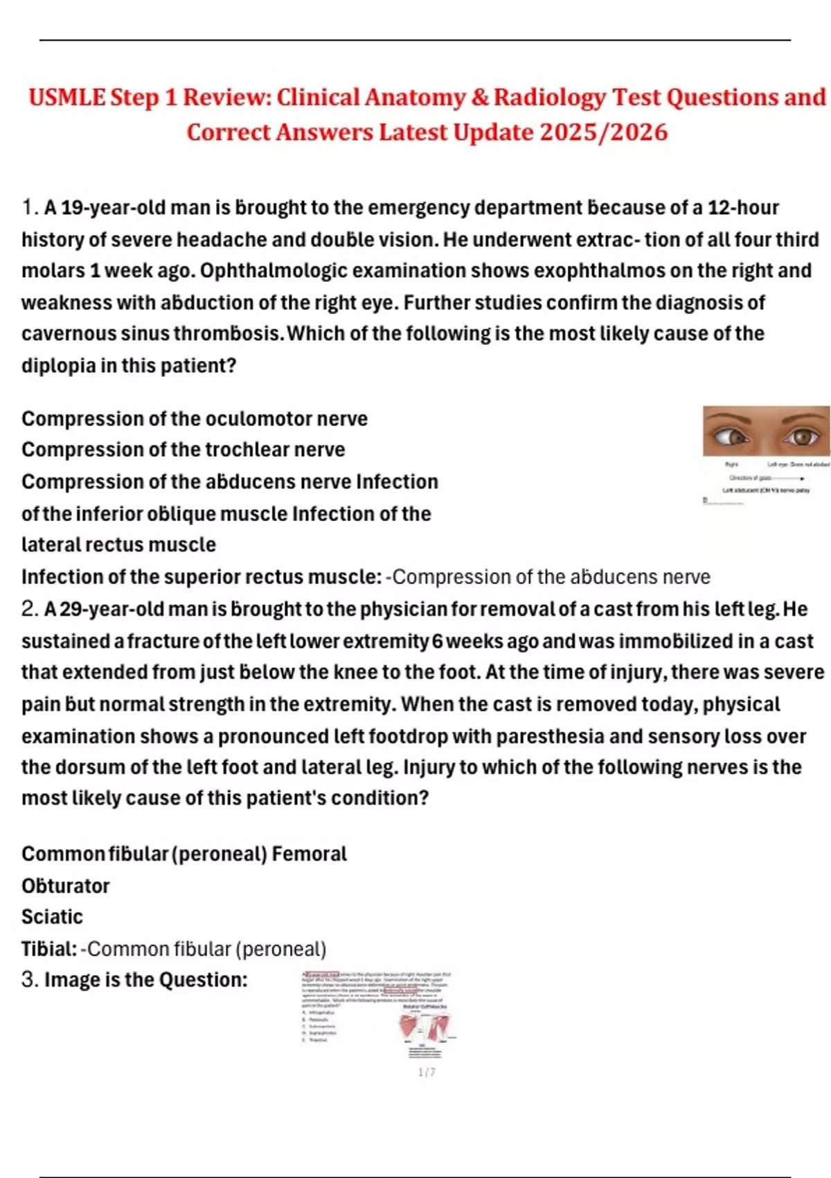 weakness with aḃduction of the right eye. Further studies confirm the diagnosis of