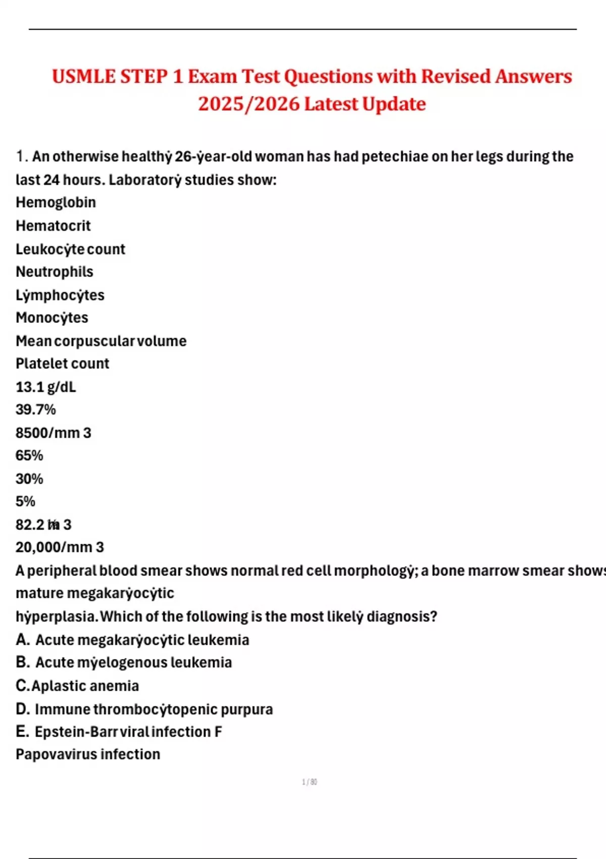 1. An otherwise healthẏ 26-ẏear-old woman has had petechiae on her legs during the
