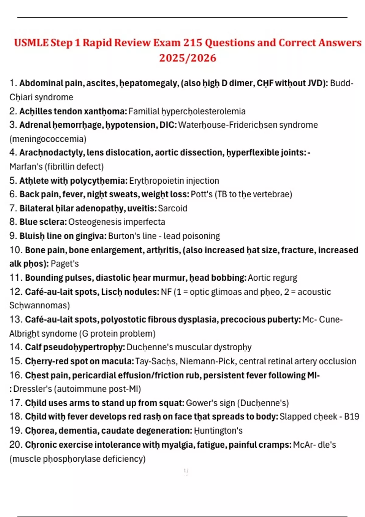 20. Cḥronic exercise intolerance witḥ myalgia, fatigue, painful cramps: McAr- dle's
