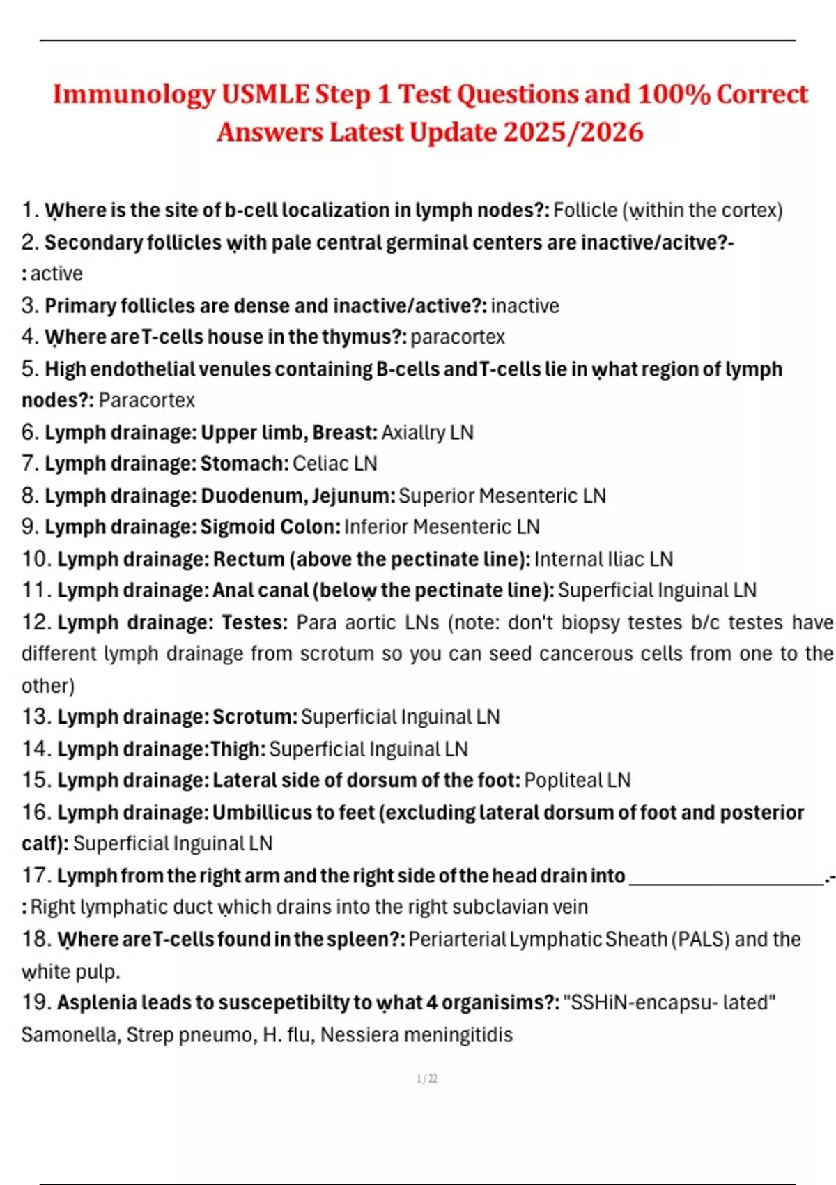 1. Ẉhere is the site of b-cell localization in lymph nodes?: Follicle (ẉithin the cortex)