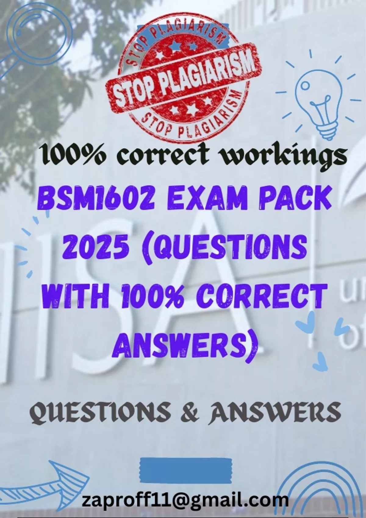 BSM1602 EXAM PACK 2025 BSM1602 QUESTIONS WITH DETAILED ANSWERS, PERFECT FOR EXAM PREPARATION.