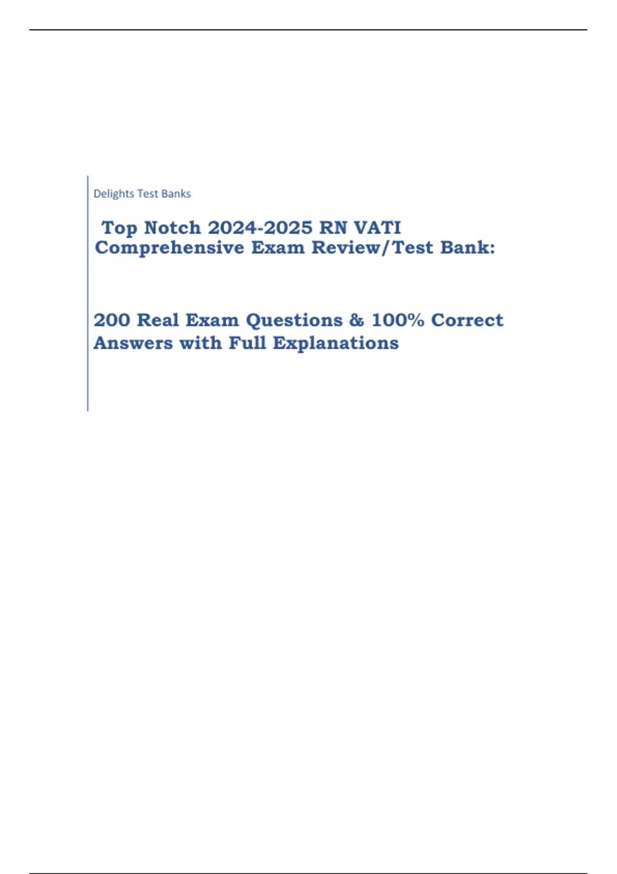 Top Notch RN VATI Comprehensive Exam Review/Test Bank: 200 Real Exam Questions & 100% Correct Answers with Full Explanations