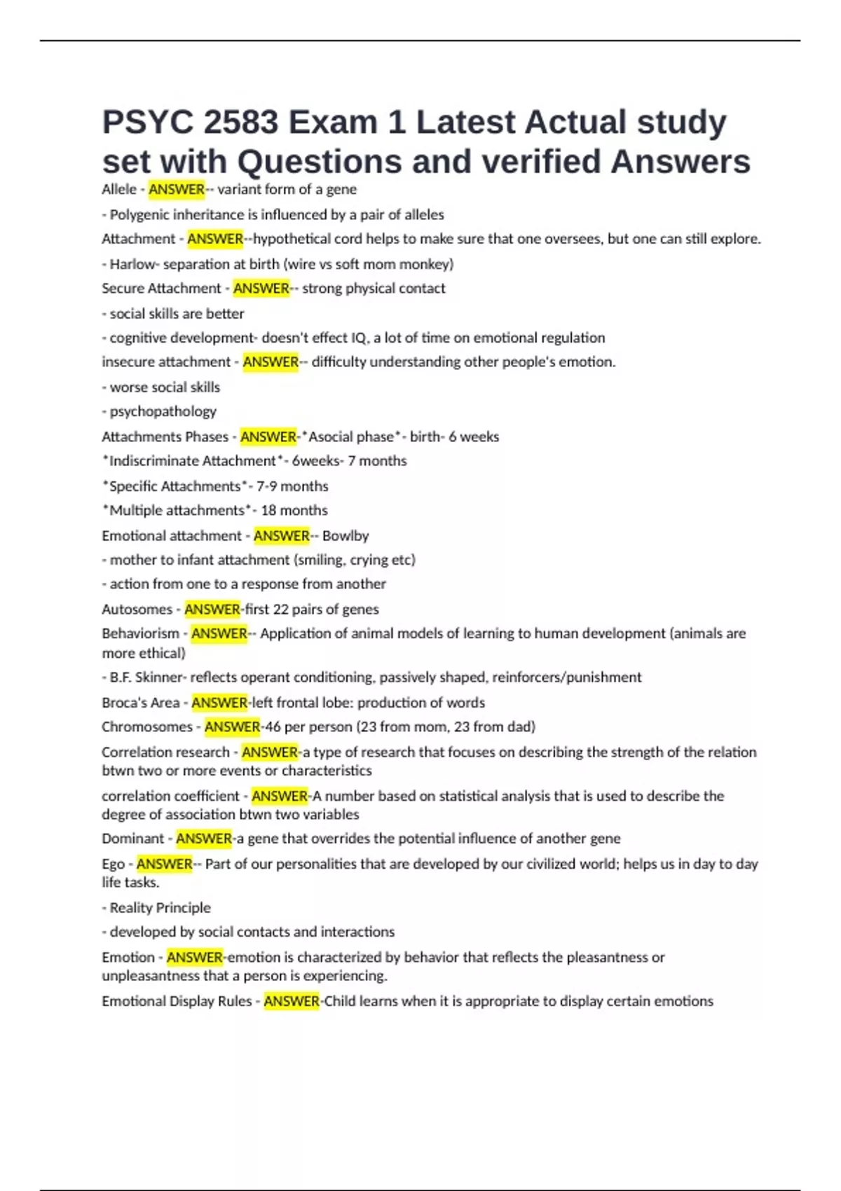 PSYC 2583 Exam 1 Latest Actual study set with Questions and verified Answers