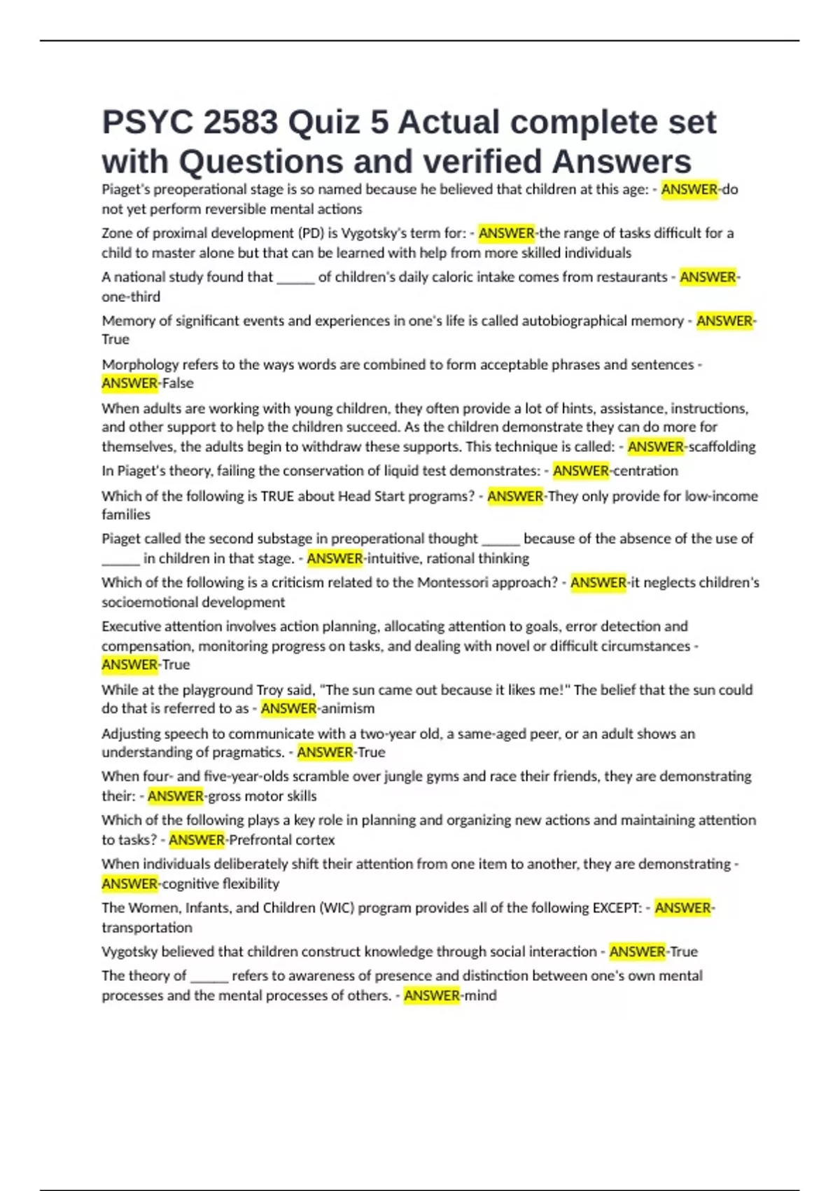 PSYC 2583 Quiz 5 Actual complete set with Questions and verified Answers