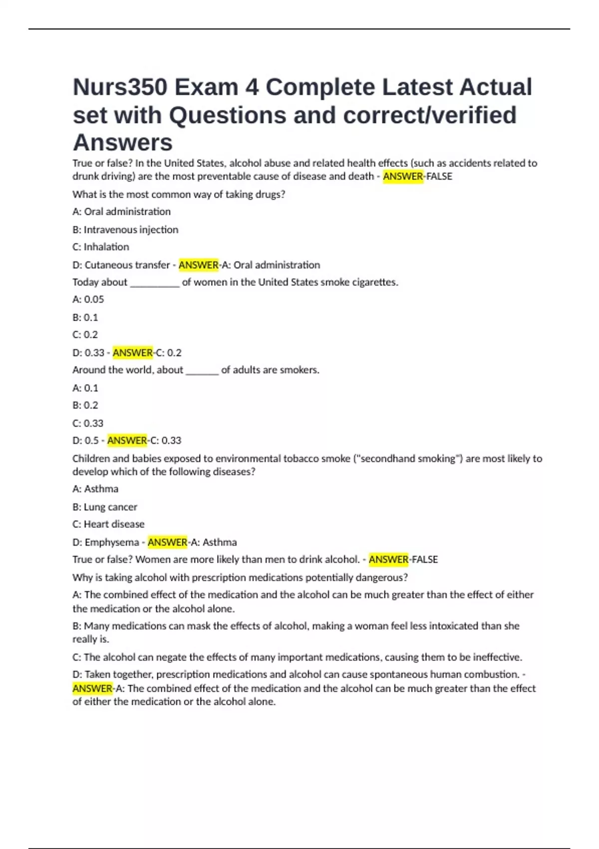 Nurs350 Exam 4 Complete Latest Actual set with Questions and correct/verified Answers