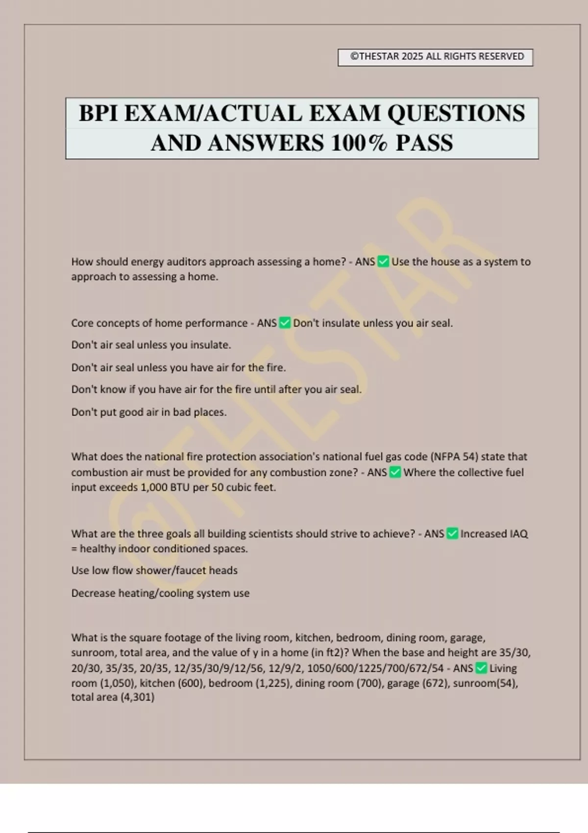BPI EXAM/ACTUAL EXAM QUESTIONS