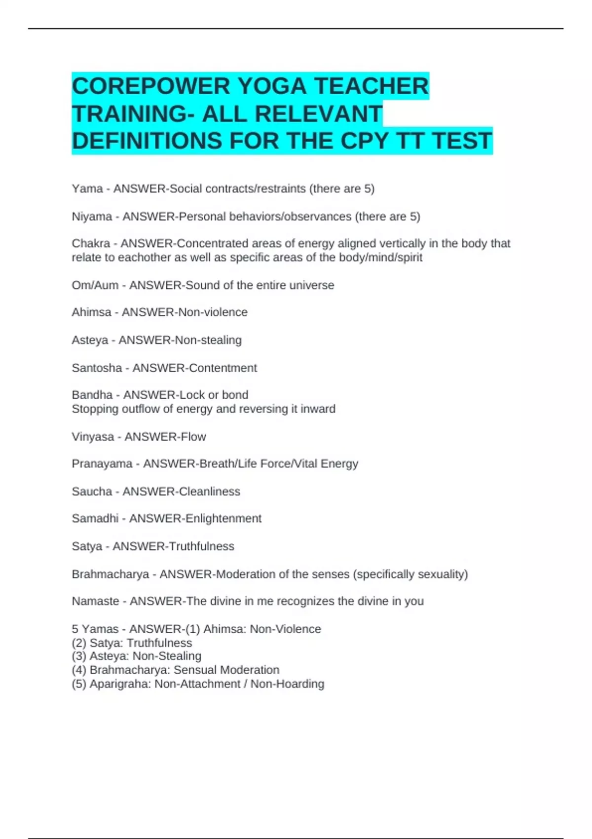 COREPOWER YOGA TEACHER TRAINING- ALL RELEVANT DEFINITIONS FOR THE CPY TT TEST