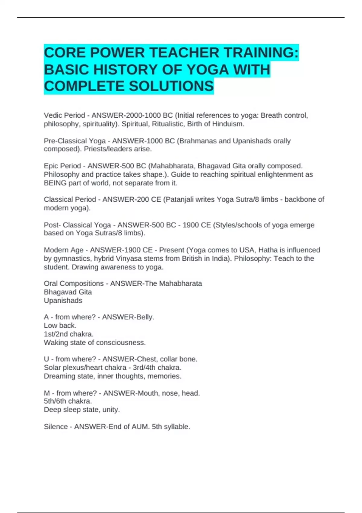 Pre-Classical Yoga - ANSWER-1000 BC (Brahmanas and Upanishads orally