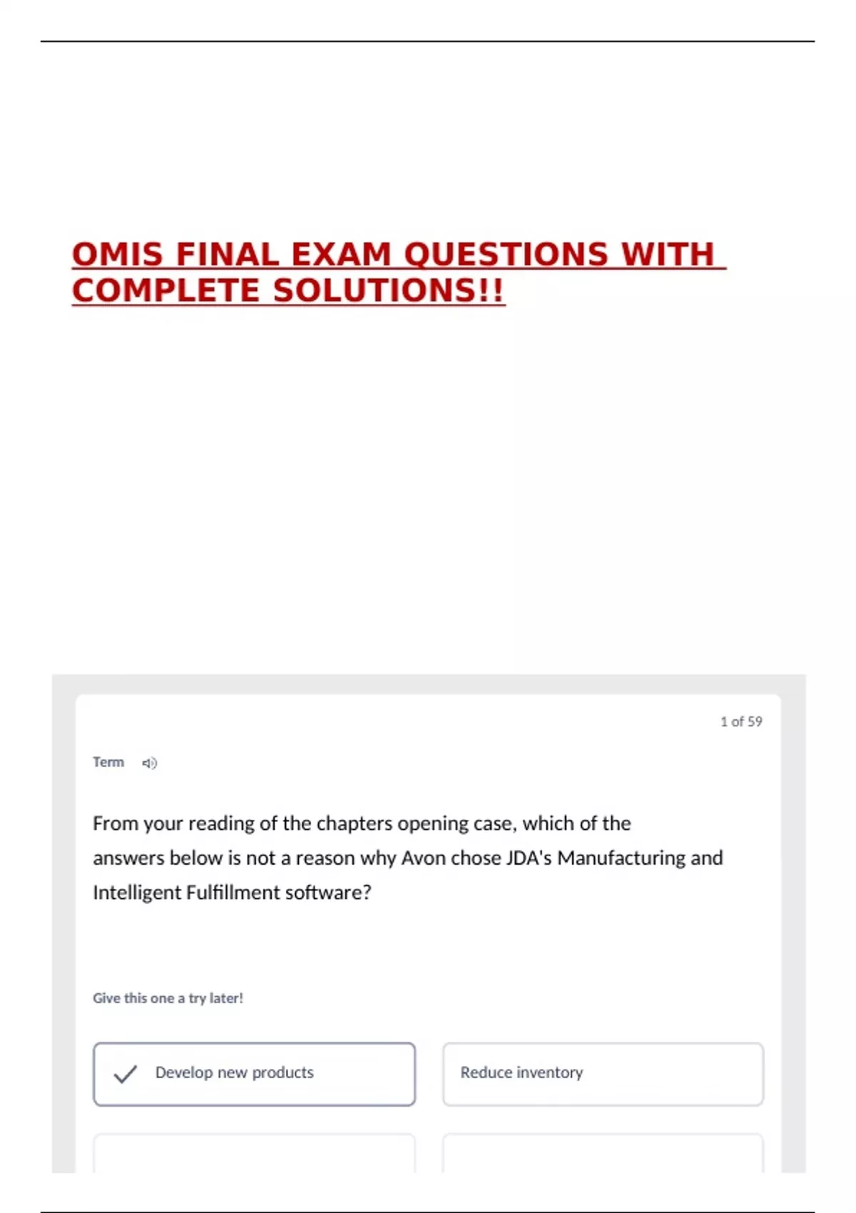 answers below is not a reason why Avon chose JDA's Manufacturing and