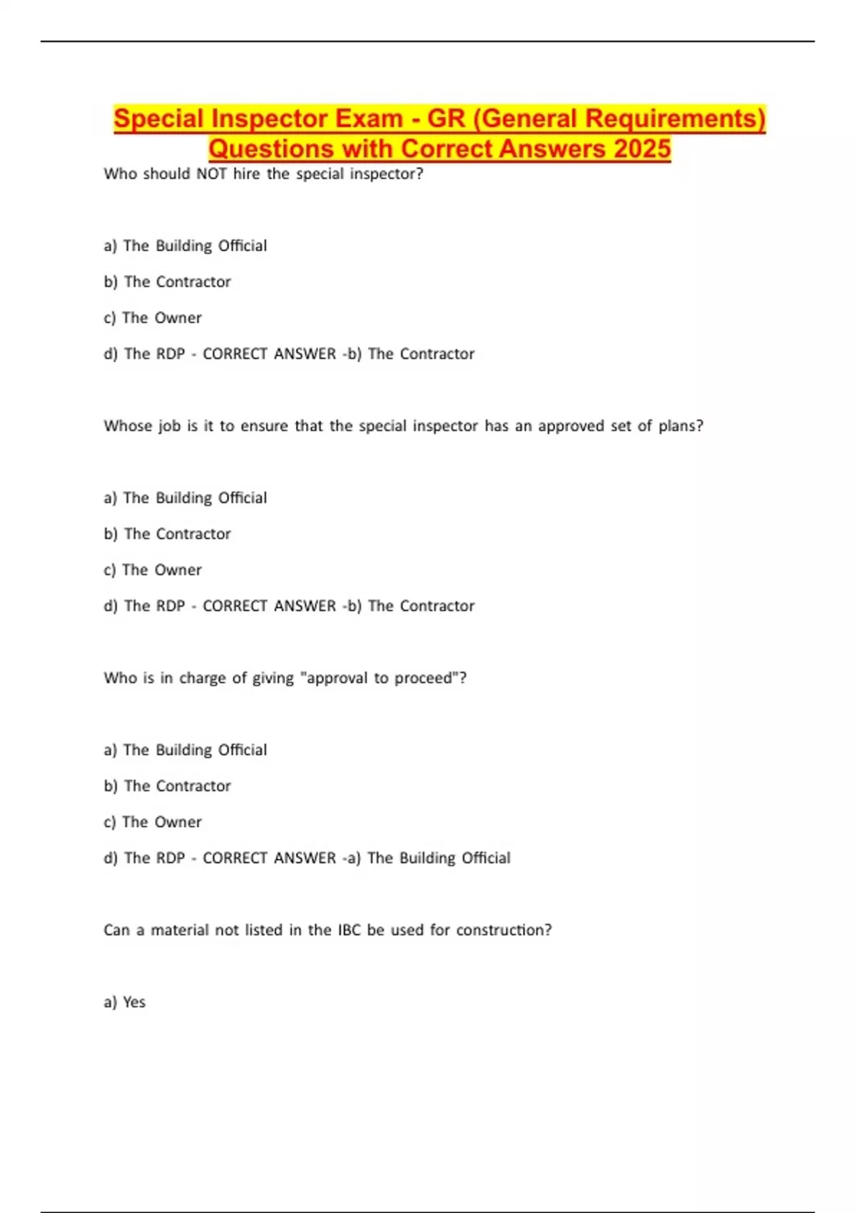 Special Inspector Exam - GR (General Requirements) Questions with Correct Answers 2025
