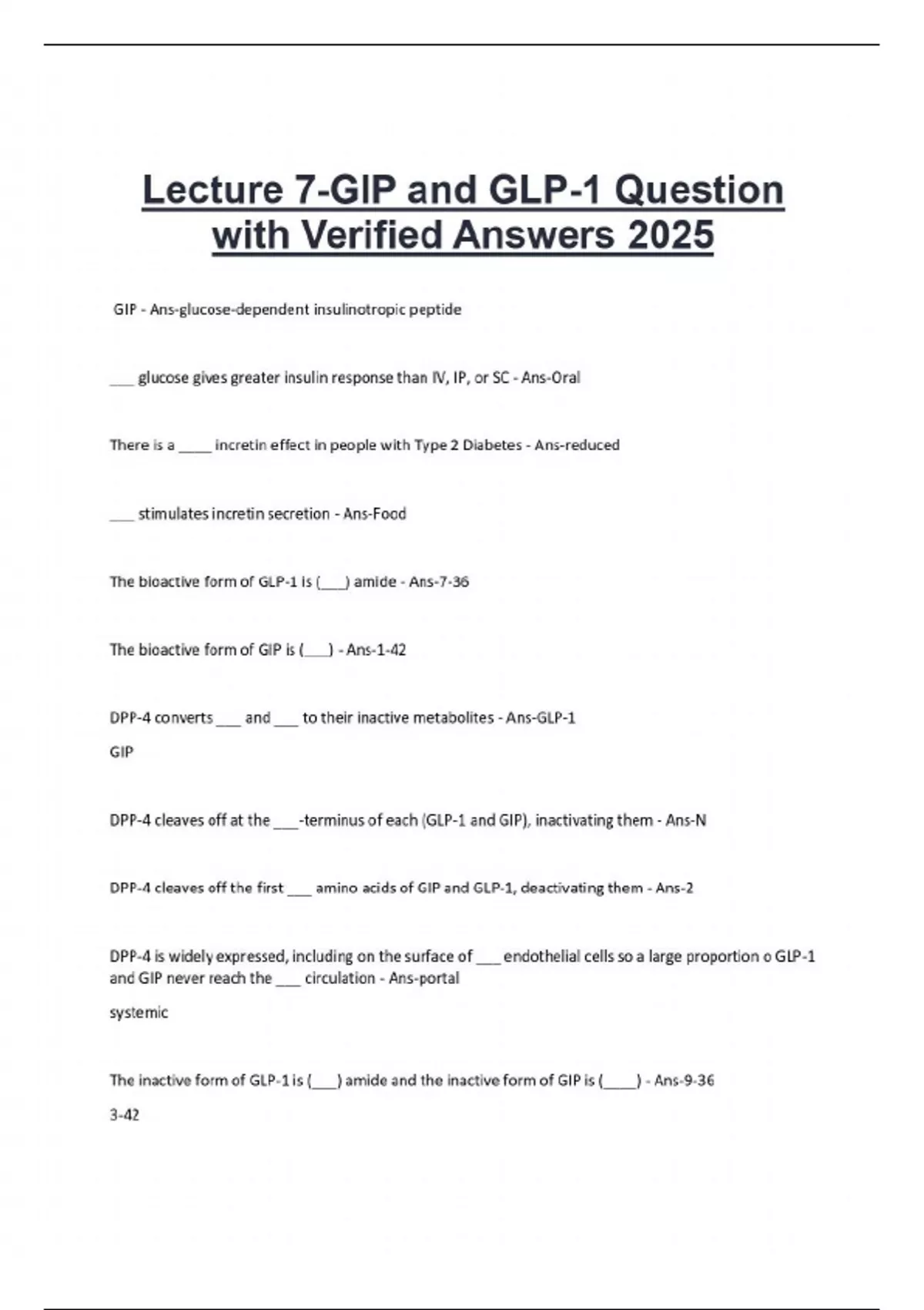 Lecture 7-GIP and GLP-1 Question with Verified Answers 2025