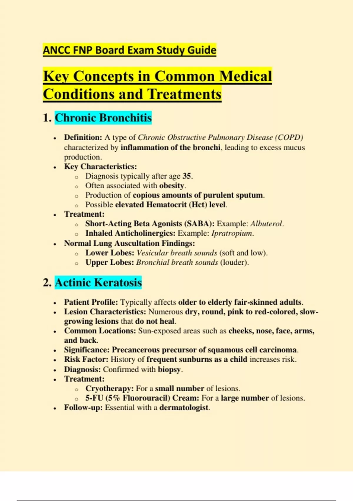 ANCC Family Nurse Practitioner Board Exam Study Guide – Comprehensive Clinical Review (USA, 2025) – Key Medical Concepts and Treatments