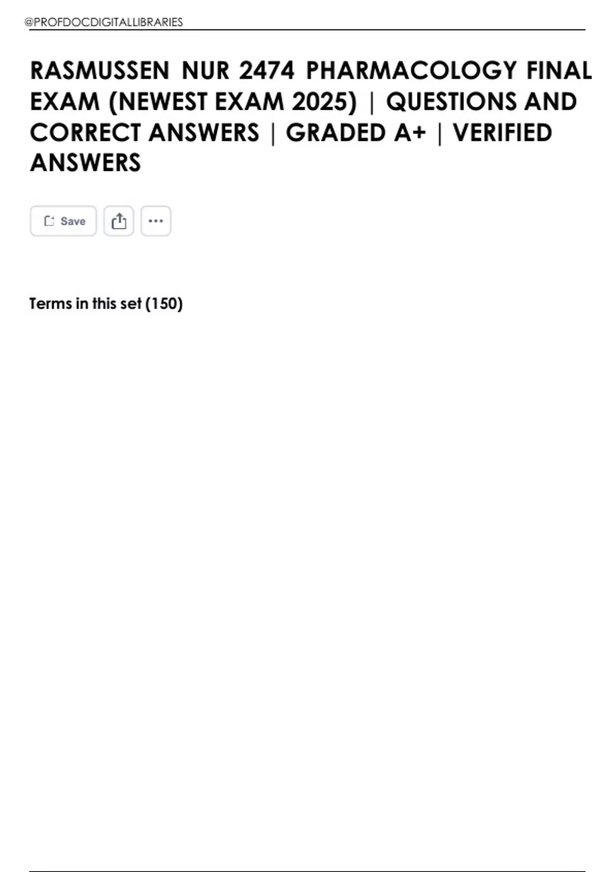 RASMUSSEN NUR 2474 PHARMACOLOGY FINAL EXAM (NEWEST EXAM 2025) | QUESTIONS AND CORRECT ANSWERS | GRADED A+ | VERIFIED ANSWERS