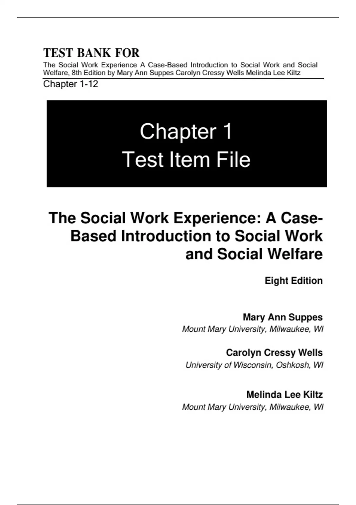 Welfare, 8th Edition by Mary Ann Suppes Carolyn Cressy Wells Melinda Lee Kiltz
