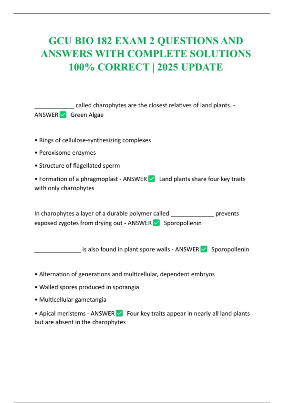 GCU BIO 182 EXAM 2 QUESTIONS AND ANSWERS WITH COMPLETE SOLUTIONS 100% CORRECT | 2025 UPDATE