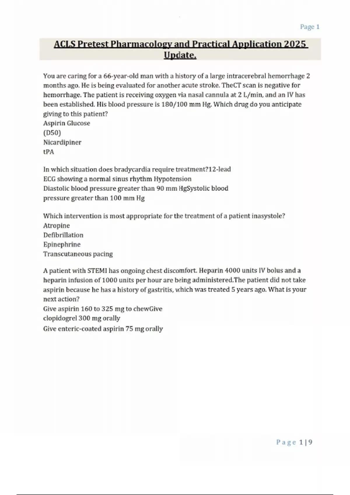 ACLS Pretest Pharmacology and Practical Application 2025 Update.