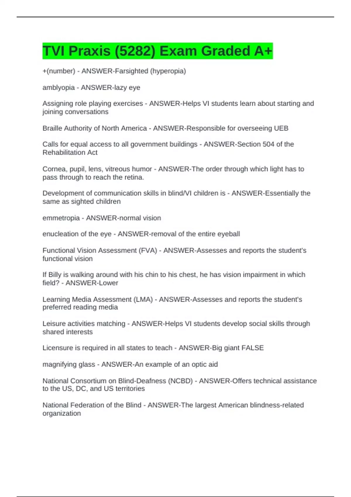 TVI Praxis (5282) Exam Graded A+