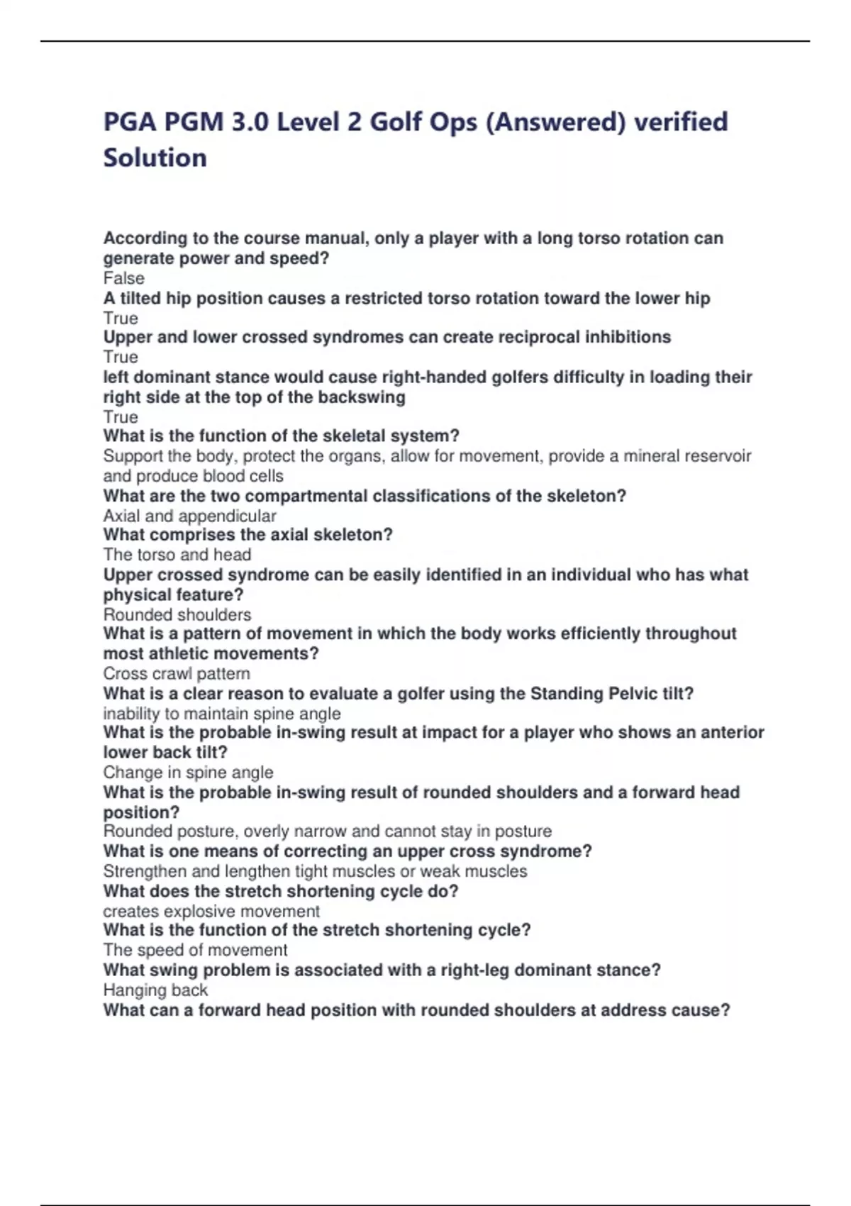 PGA PGM 3.0 Level 2 Golf Ops (Answered) verified