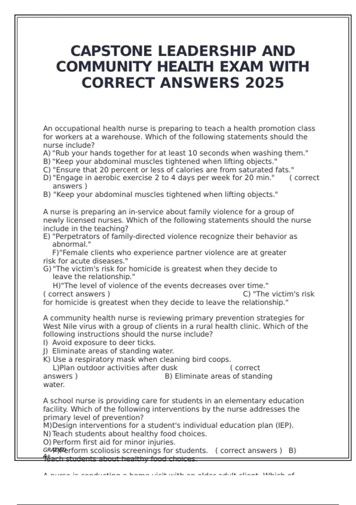 CAPSTONE LEADERSHIP AND COMMUNITY HEALTH EXAM WITH CORRECT ANSWERS 2025